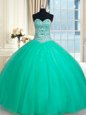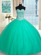Custom Design Sweetheart Sleeveless Tulle Sweet 16 Dress Beading Lace Up