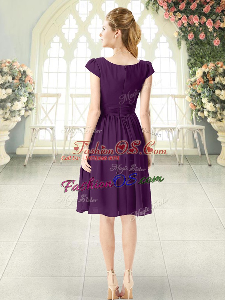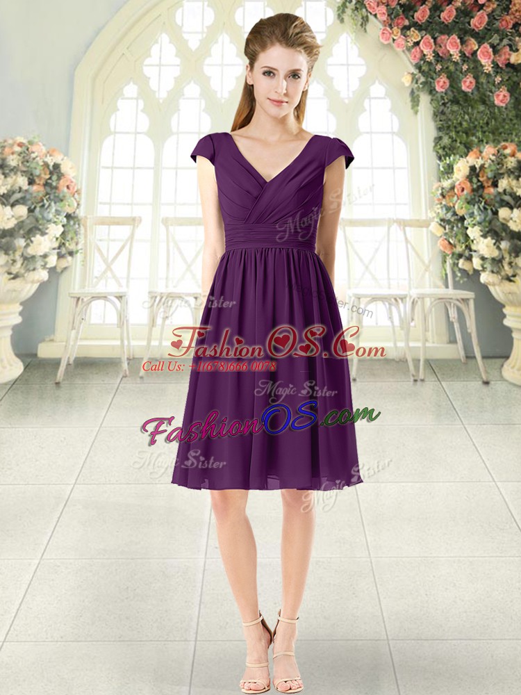 Custom Design V-neck Cap Sleeves Chiffon Prom Dresses Ruching Zipper