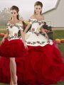 Custom Design White And Red Sleeveless Floor Length Embroidery and Ruffles Lace Up Ball Gown Prom Dress