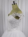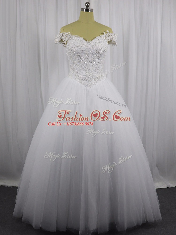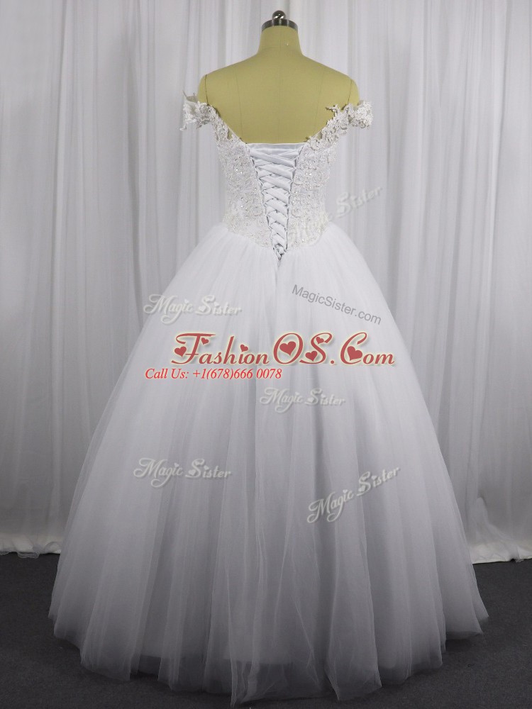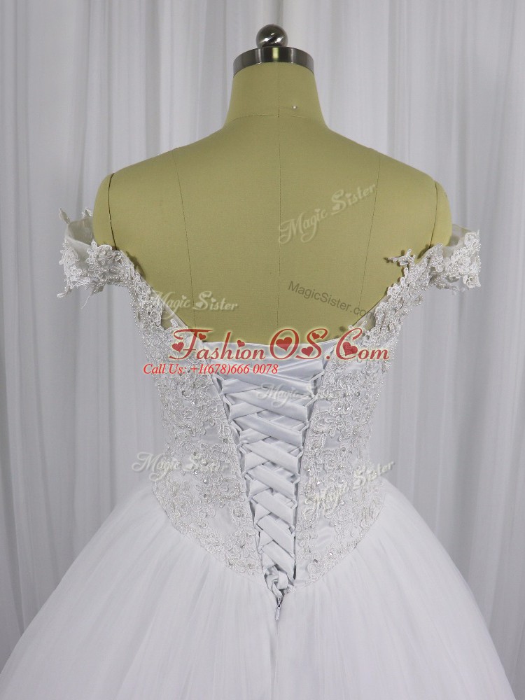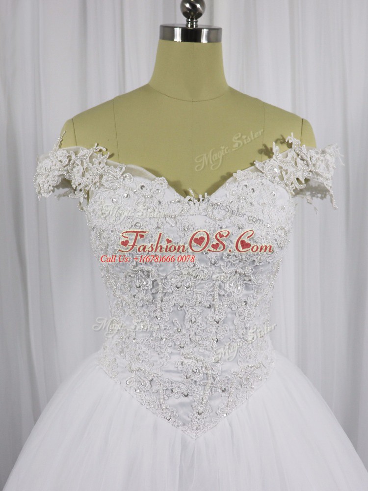 Custom Design White Off The Shoulder Neckline Beading and Lace Wedding Dress Sleeveless Lace Up