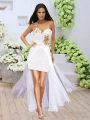 Custom Design White One Shoulder Neckline Appliques Prom Gown Sleeveless Zipper