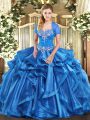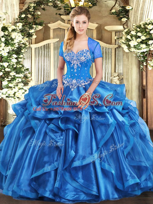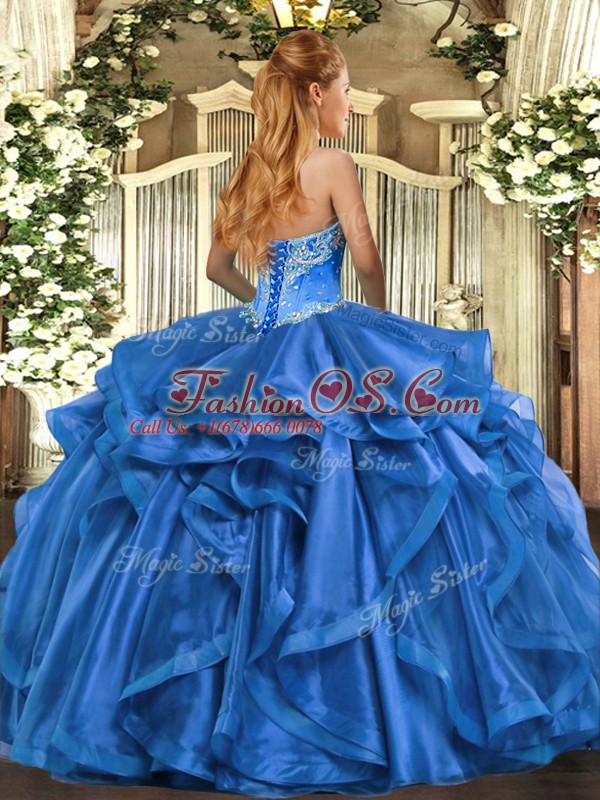 Custom Designed Baby Blue Sweetheart Neckline Beading and Ruffles Quinceanera Gown Sleeveless Lace Up
