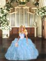 Home >  Quinceanera Dresses >  Princesita with Quinceanera Dresses > Custom Designed Blue Lace Up Ball Gown Prom Dress Beading and Ruffles Sleeveless Floor Length