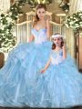 Custom Designed Blue Lace Up Ball Gown Prom Dress Beading and Ruffles Sleeveless Floor Length