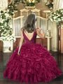 Custom Designed Brown V-neck Backless Beading and Ruffles Pageant Dress Womens Sleeveless