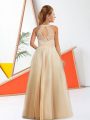 Custom Designed Floor Length Champagne Quinceanera Court Dresses Halter Top Sleeveless Zipper