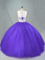 Custom Designed Floor Length Two Pieces Sleeveless Purple Quinceanera Dresses Zipper