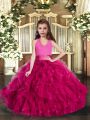 Custom Designed Fuchsia Lace Up Halter Top Ruffles Little Girls Pageant Dress Wholesale Tulle Sleeveless