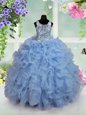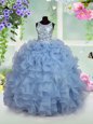 Custom Designed Halter Top Sleeveless Little Girl Pageant Dress Floor Length Beading and Ruffles Fuchsia Taffeta