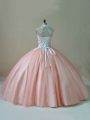 Custom Designed Halter Top Sleeveless Tulle Sweet 16 Dress Beading and Lace Lace Up