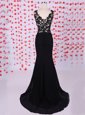 Home >  Prom Dresses >  Beautiful Prom Dresses > Custom Designed Mermaid Scoop Sleeveless Chiffon Homecoming Dress Appliques Brush Train Zipper