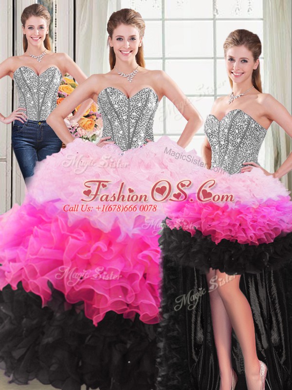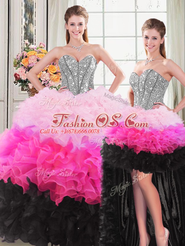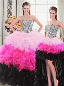 Custom Designed Multi-color Organza Lace Up Sweetheart Sleeveless Floor Length Ball Gown Prom Dress Beading and Ruffles