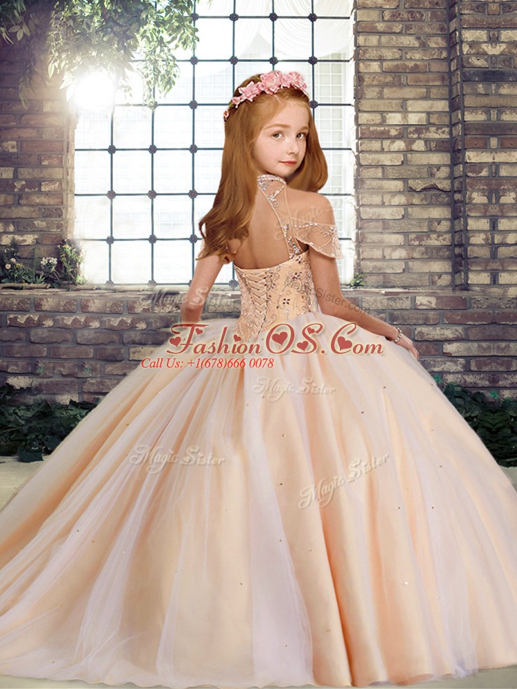 Home >  Special Occasion Dresses >  Beautiful Kids Pageant Dresses > Custom Designed Olive Green Pageant Dress Party and Military Ball and Wedding Party with Beading Off The Shoulder Sleeveless Lace Up