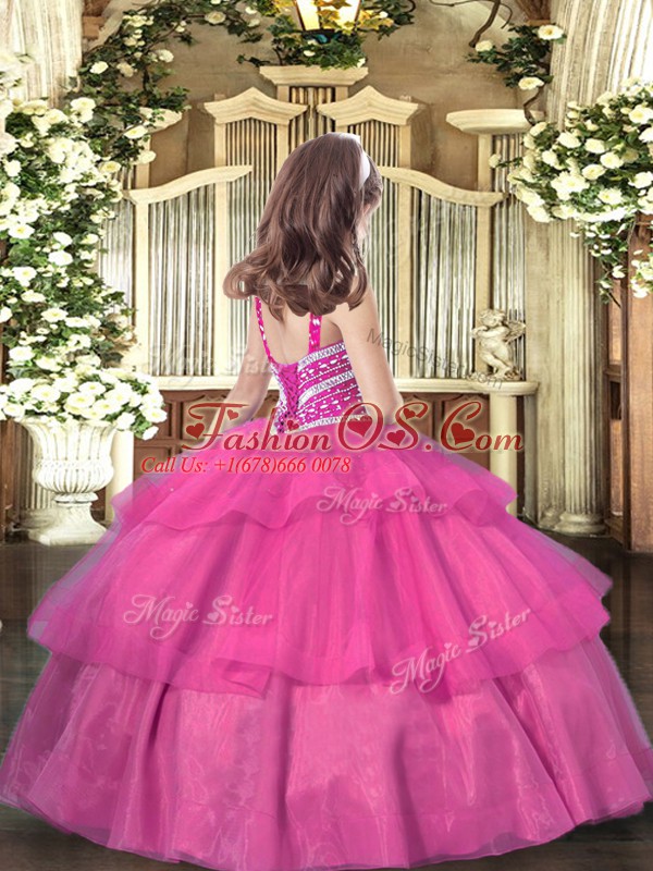 Home >  Special Occasion Dresses >  Beautiful Kids Pageant Dresses > Custom Designed Orange Straps Neckline Ruffled Layers Pageant Dress for Womens Sleeveless Lace Up