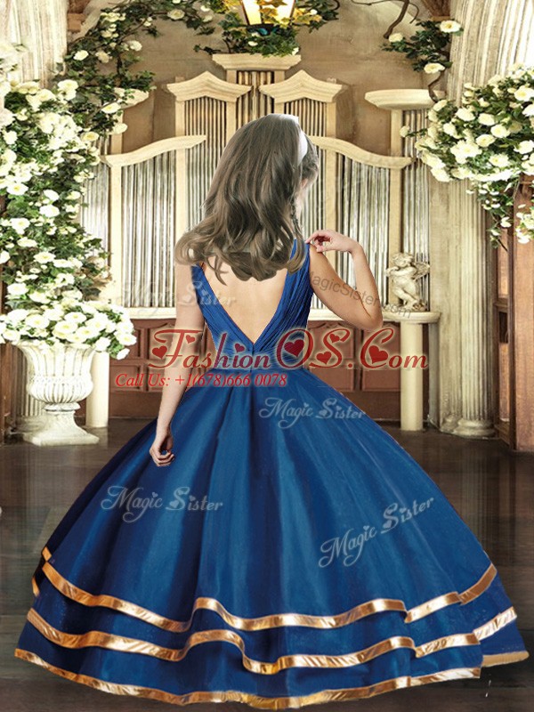 Custom Designed Organza V-neck Sleeveless Backless Beading and Ruching Pageant Dress for Girls in Purple