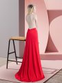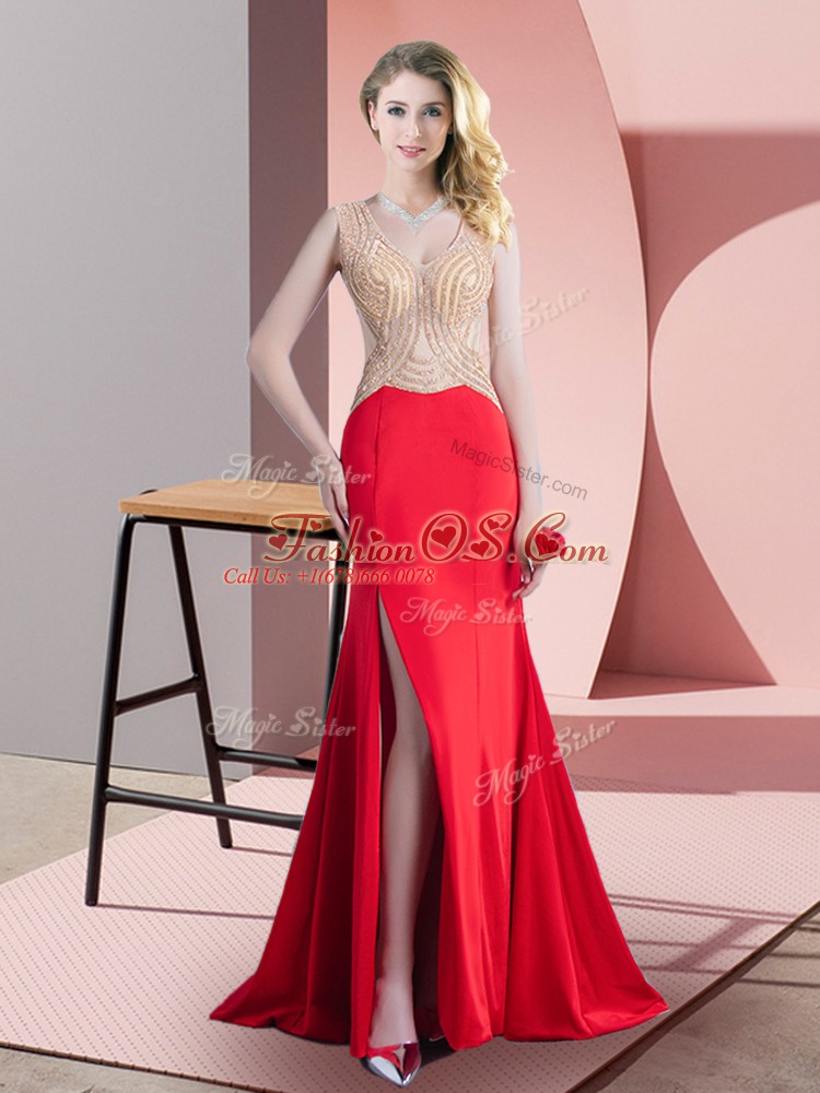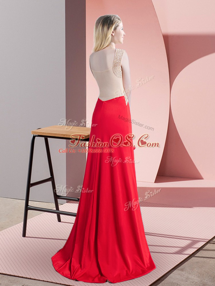 Custom Designed Red Scoop Neckline Beading Party Dress Sleeveless Zipper