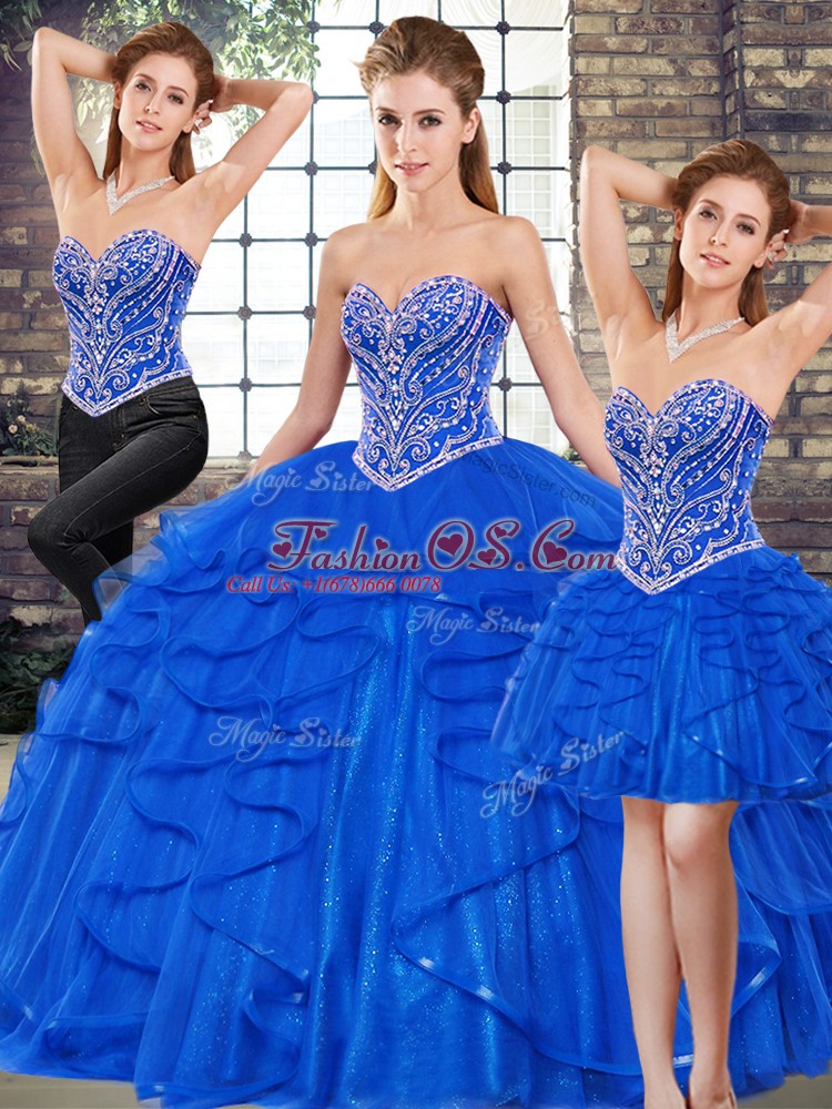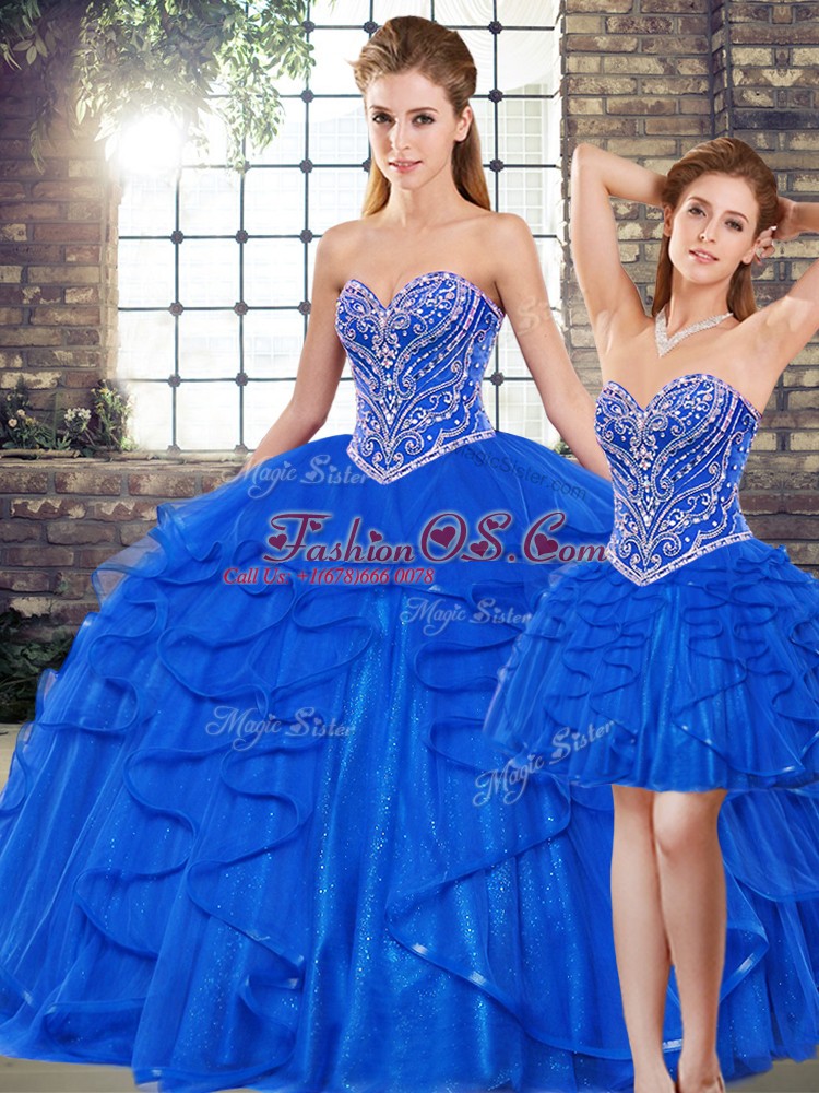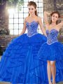 Custom Designed Royal Blue Sleeveless Floor Length Beading and Ruffles Lace Up Sweet 16 Dresses