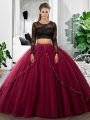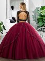 Home >  Quinceanera Dresses >  Luxurious Quinceanera Dresses > Custom Designed Scoop Long Sleeves Tulle Ball Gown Prom Dress Lace and Ruching Backless