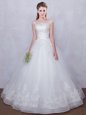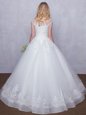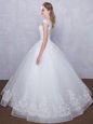 Custom Designed Scoop White Lace Up Wedding Gowns Lace Cap Sleeves Floor Length
