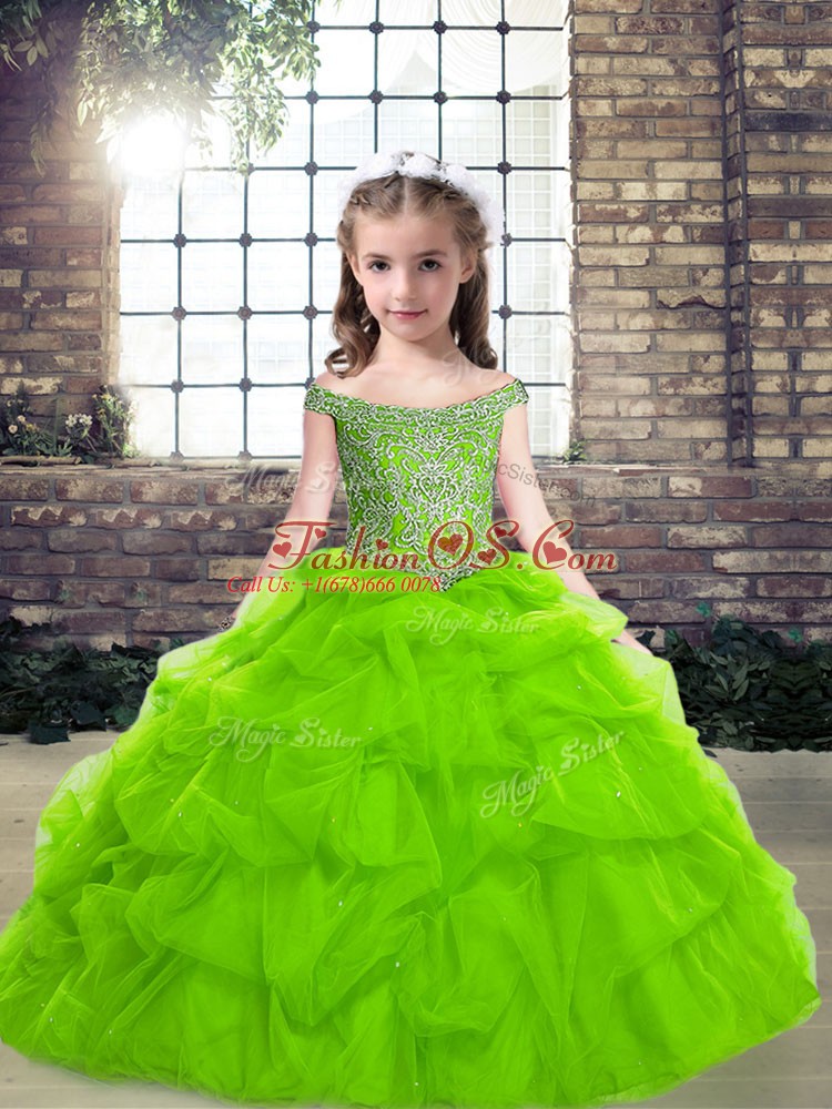 Custom Designed Sleeveless Floor Length Beading and Pick Ups Lace Up Little Girl Pageant Gowns