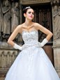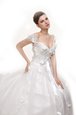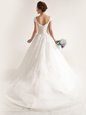 Custom Designed White Wedding Dresses Wedding Party and For with Appliques and Sashes|ribbons V-neck Sleeveless Chapel Train Lace Up