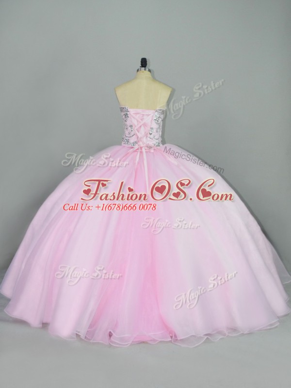 Custom Fit Baby Pink Quinceanera Dresses Sweet 16 and Quinceanera with Beading Sweetheart Sleeveless Lace Up