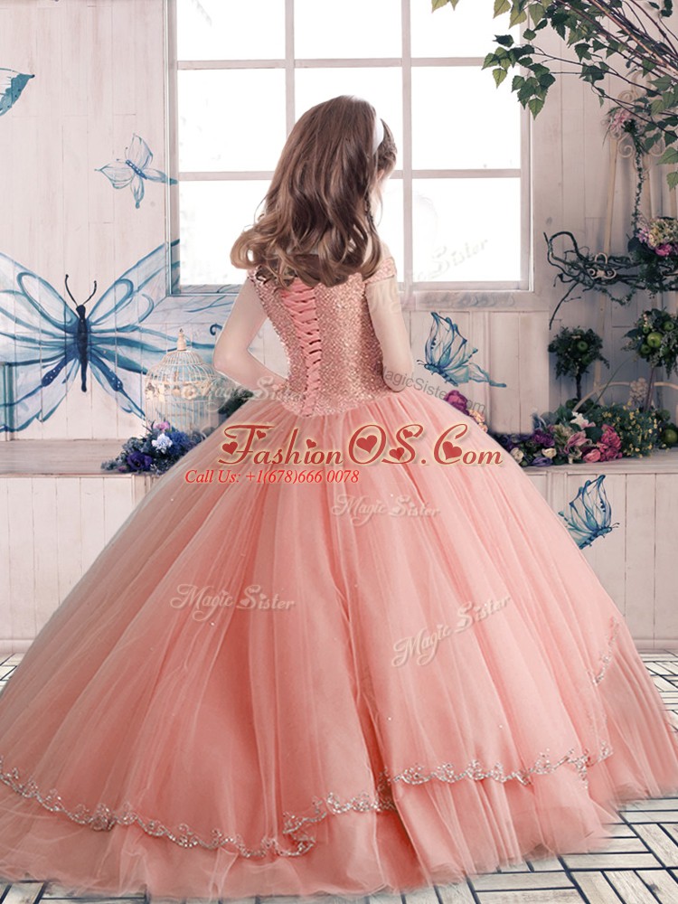 Home >  Special Occasion Dresses >  2019 Little Girl Pageant Dresses > Custom Fit Ball Gowns Child Pageant Dress Rose Pink Off The Shoulder Tulle Sleeveless Floor Length Lace Up