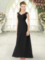 Custom Fit Black Sleeveless Ankle Length Lace Zipper Prom Dresses