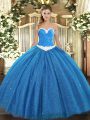 Custom Fit Blue Ball Gown Prom Dress Military Ball and Sweet 16 and Quinceanera with Appliques Sweetheart Sleeveless Lace Up