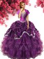 Home >  Quinceanera Dresses >  Discount Quinceanera Dresses > Custom Fit Floor Length Dark Purple Quinceanera Dress Organza and Taffeta Sleeveless Beading and Ruffles and Pick Ups