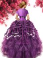 Custom Fit Floor Length Dark Purple Quinceanera Dress Organza and Taffeta Sleeveless Beading and Ruffles and Pick Ups