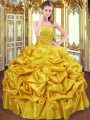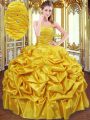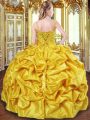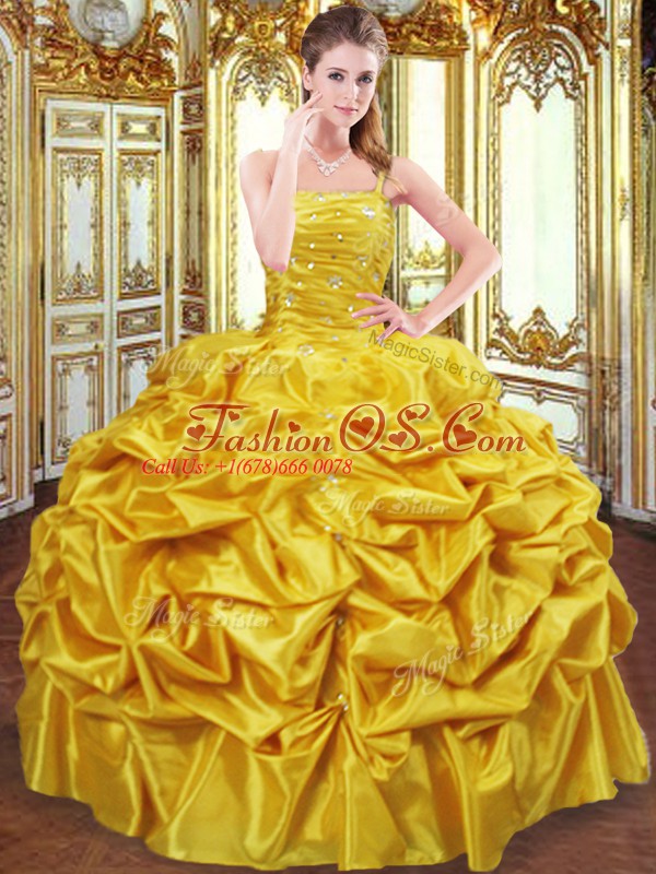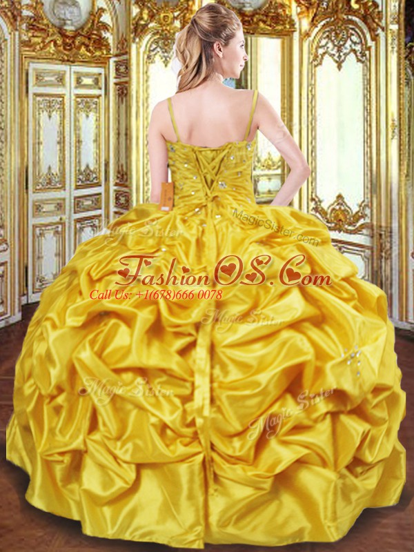 Custom Fit Floor Length Gold Sweet 16 Dresses Spaghetti Straps Sleeveless Lace Up