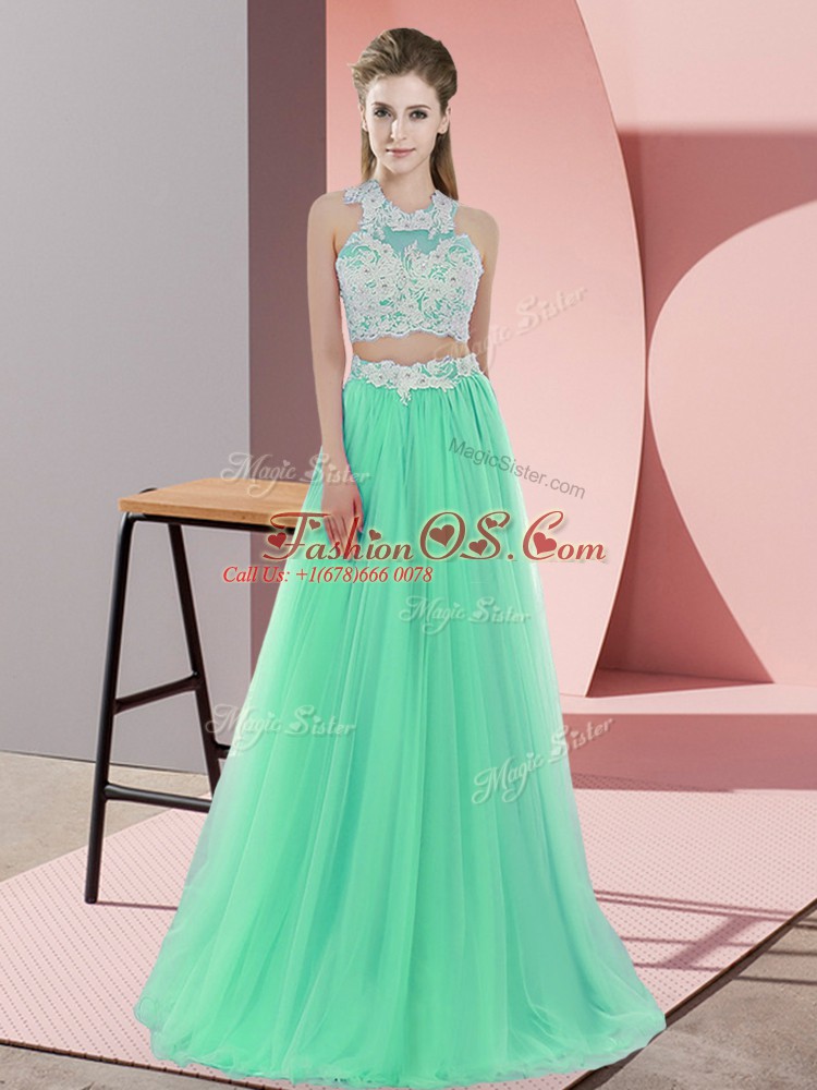 Custom Fit Halter Top Sleeveless Zipper Quinceanera Dama Dress Apple Green Tulle