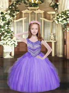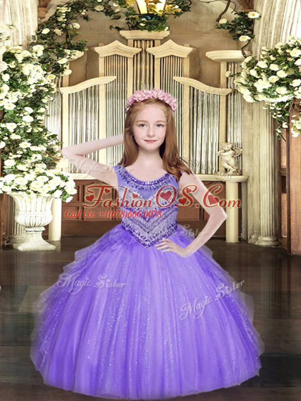 Home >  Special Occasion Dresses >  Lovely Little Girl Pageant Dresses > Custom Fit Lavender Sleeveless Beading and Ruffles Floor Length Little Girl Pageant Gowns