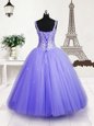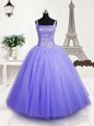 Custom Fit Lavender Straps Neckline Beading and Sequins Little Girl Pageant Gowns Sleeveless Lace Up