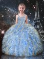 Custom Fit Light Blue Ball Gowns Organza Sweetheart Sleeveless Beading and Ruffles Floor Length Lace Up Sweet 16 Dress