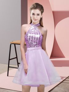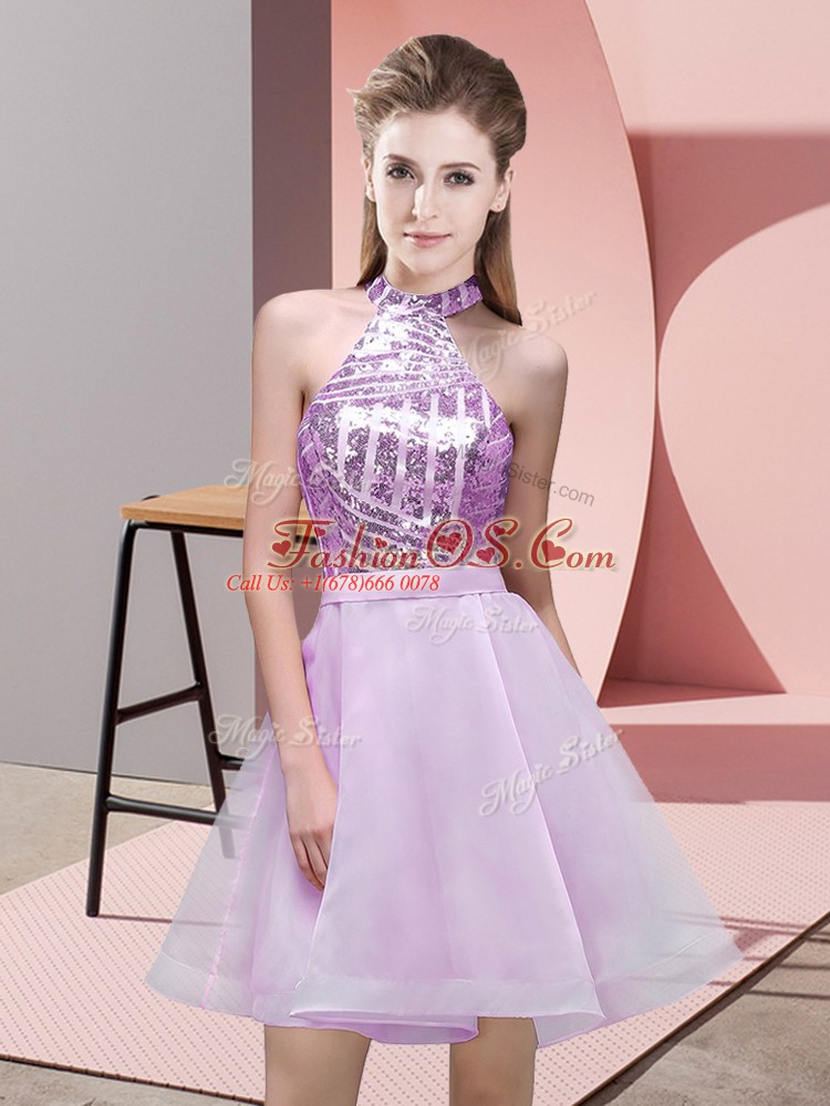 Custom Fit Lilac Backless Halter Top Sequins Quinceanera Dama Dress Chiffon Sleeveless