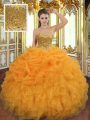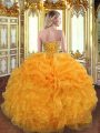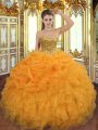 Custom Fit Orange Lace Up Quinceanera Dress Beading and Ruffles Sleeveless Floor Length