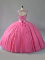 Custom Fit Pink Ball Gowns Scoop Sleeveless Beading Lace Up Quinceanera Gowns