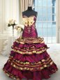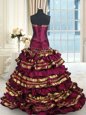 Home >  Quinceanera Dresses >  Perfect Quinceanera Dresses > Custom Fit Ruffled Layers Burgundy Sleeveless Taffeta Brush Train Lace Up 15th Birthday Dress for Military Ball and Sweet 16 and Quinceanera
