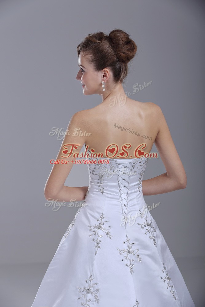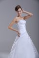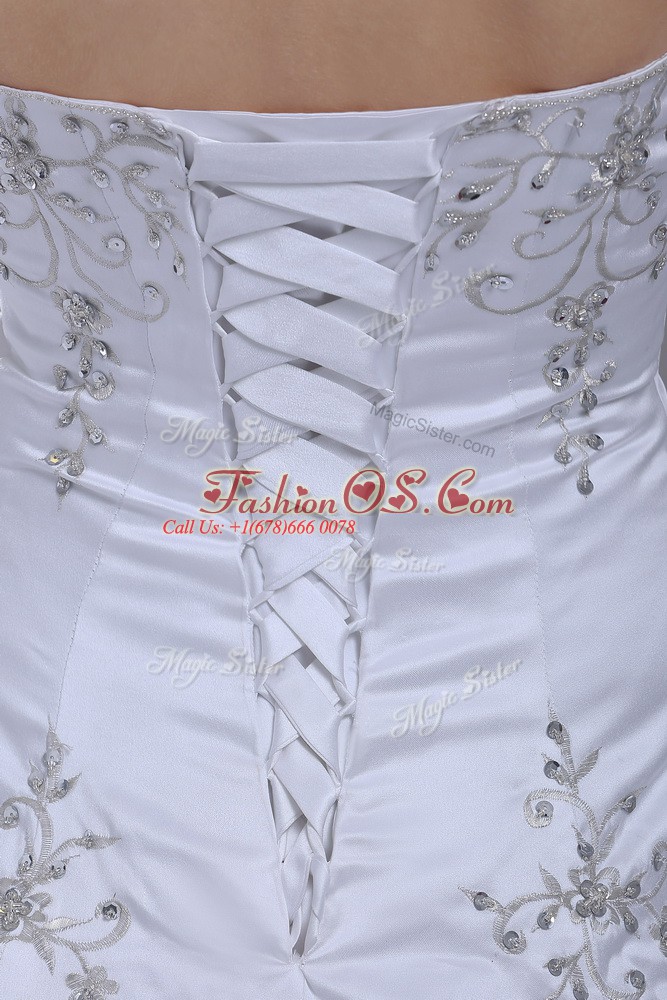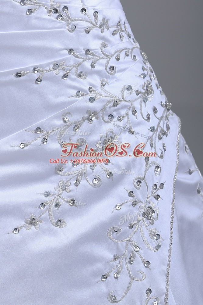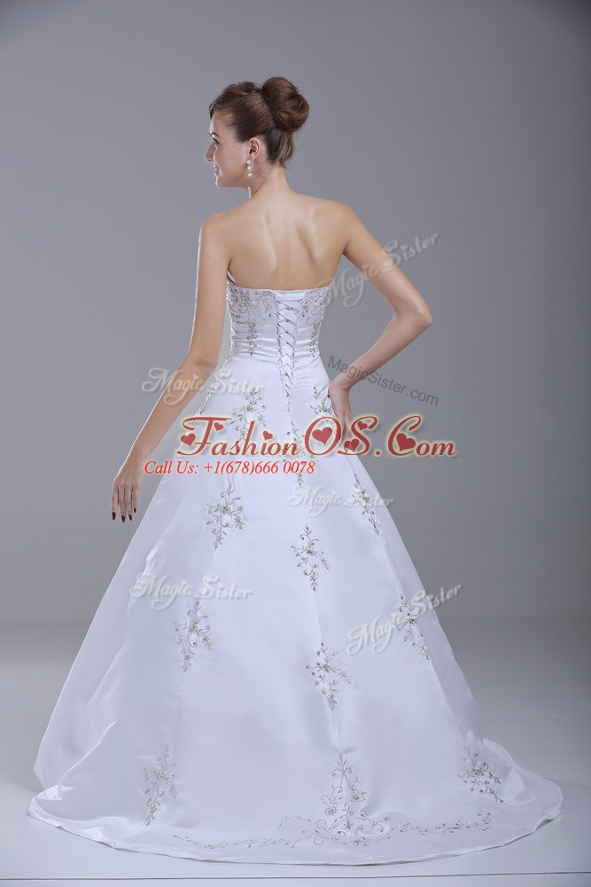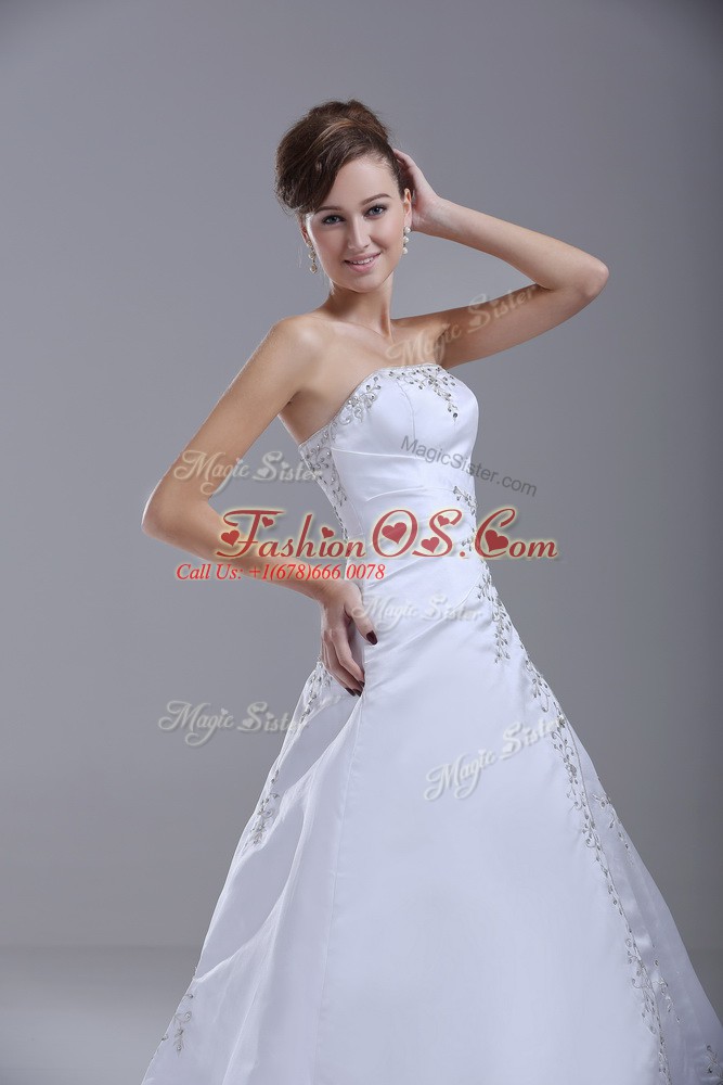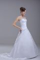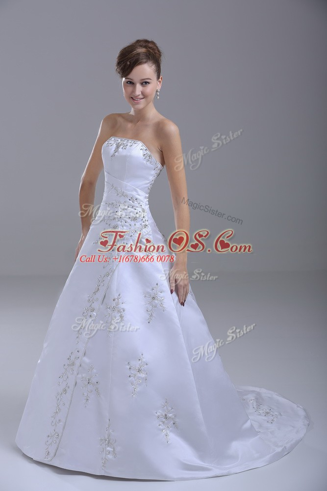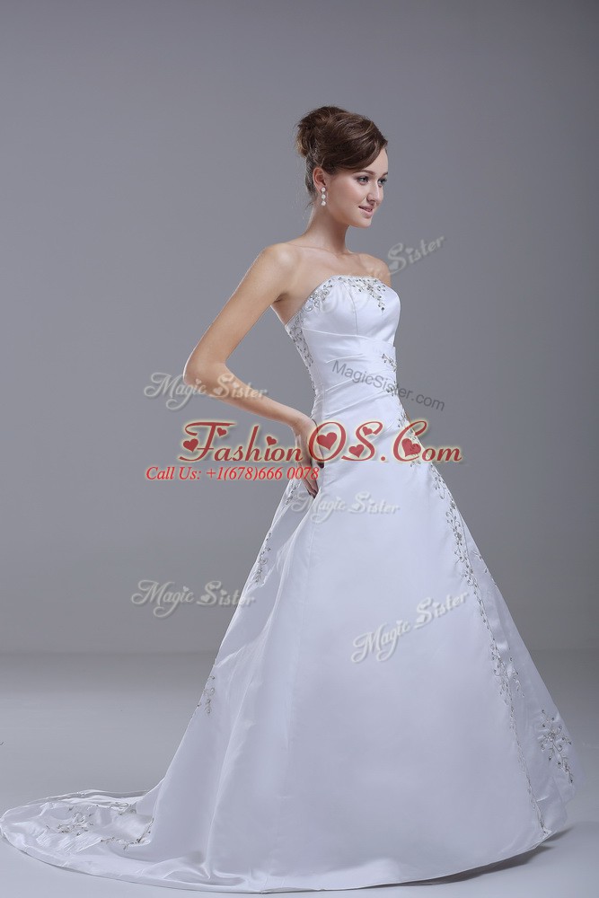 Custom Fit Satin Sleeveless Wedding Dress Brush Train and Beading