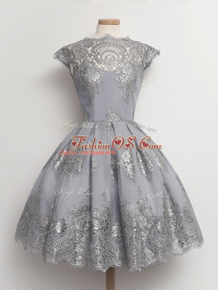 Custom Fit Scalloped Cap Sleeves Tulle Court Dresses for Sweet 16 Lace Lace Up