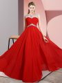 Custom Fit Scoop Sleeveless Clasp Handle Prom Party Dress Red Chiffon