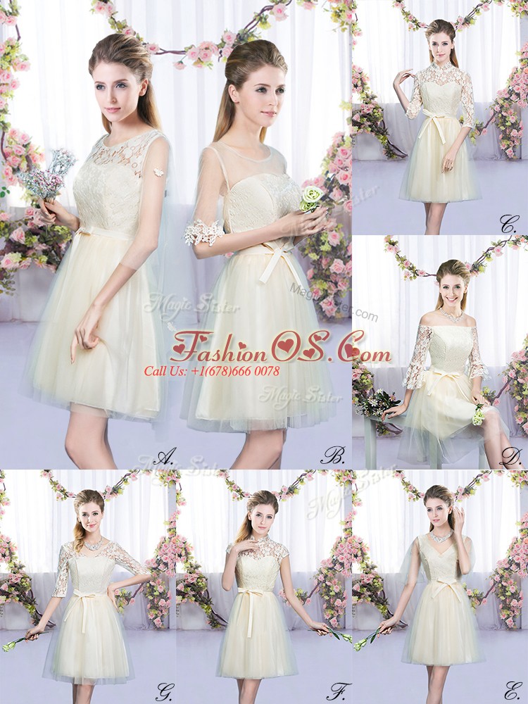 Home >  Bridesmaid Dresses >  Perfect Bridesmaid Dresses > Custom Fit Sleeveless Mini Length Lace and Bowknot Lace Up Wedding Party Dress with Champagne