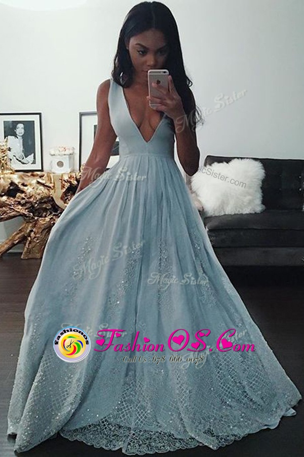 Custom Fit Sleeveless Zipper Floor Length Beading and Lace Celebrity Dress