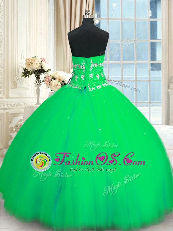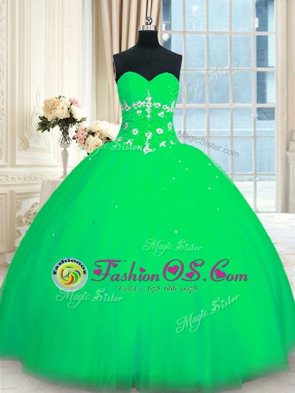 Home >  Quinceanera Dresses >  In Stock Quinceanera Dresses > Custom Fit Sweetheart Sleeveless Quinceanera Dresses Floor Length Appliques Green Tulle