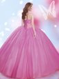 Custom Fit Sweetheart Sleeveless Sweet 16 Dress Floor Length Beading Lilac Tulle