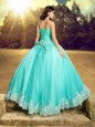 Home >  Quinceanera Dresses >  Fashionable Quinceanera Dresses > Custom Fit Tulle Sleeveless Floor Length Quinceanera Gown and Beading and Lace and Bowknot