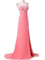 Custom Fit Watermelon Red Prom Dress Sweetheart Cap Sleeves Brush Train Zipper