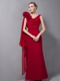Every Mum wants to be beautiful and elegant to attend the wedding ceremony of her sons or daughter witnessing the happiest moment of their kids and recalling the memory of their wedding. This red sleeveless mother of the bride dress will be your best choice for wedding. Draped scoop neckline with flowers on one top shoulder, ribbons hunging off in the back, all these help to complete the look. Ankle-length and clean lines will add extra charms to you.